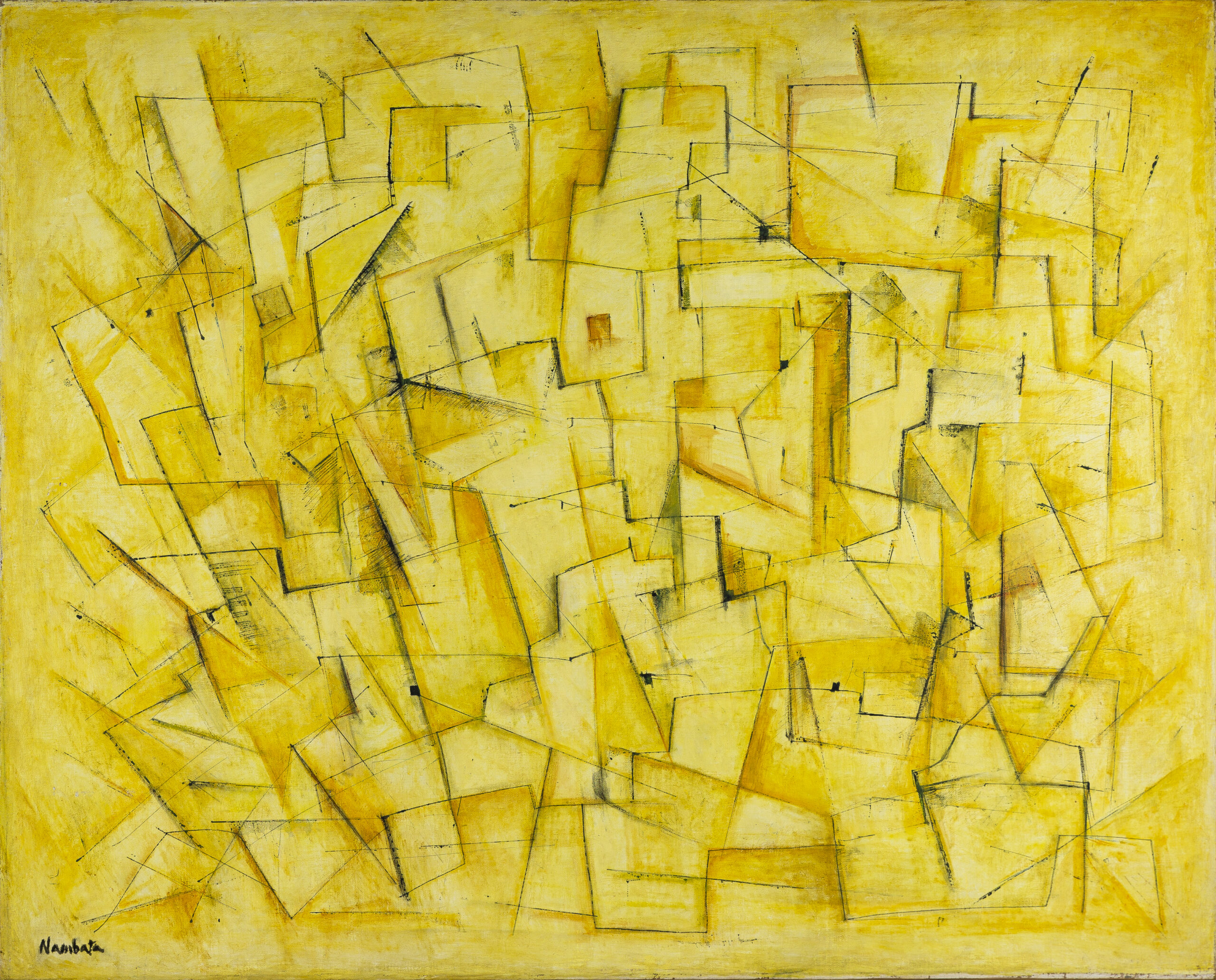 Tatsuoki Nambata, known as a pioneer of Japanese abstract painting, began with an interest in poetry and philosophy and sought to evoke emotional and spiritual tremors through the rhythms of line and color alone. Even after relinquishing concrete motifs, his abstract canvases retain a lingering sense of collective figures or narrative presence, where quiet lyricism coexists with an inner pulse. What emerges is not a visible landscape but an Eastern-inflected mindscape in which sensation and memory intertwine.