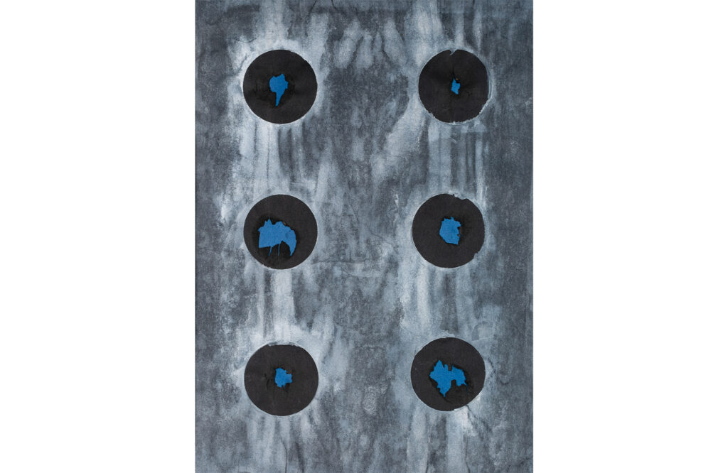 Burnt drawing, collage, watercolor on paper