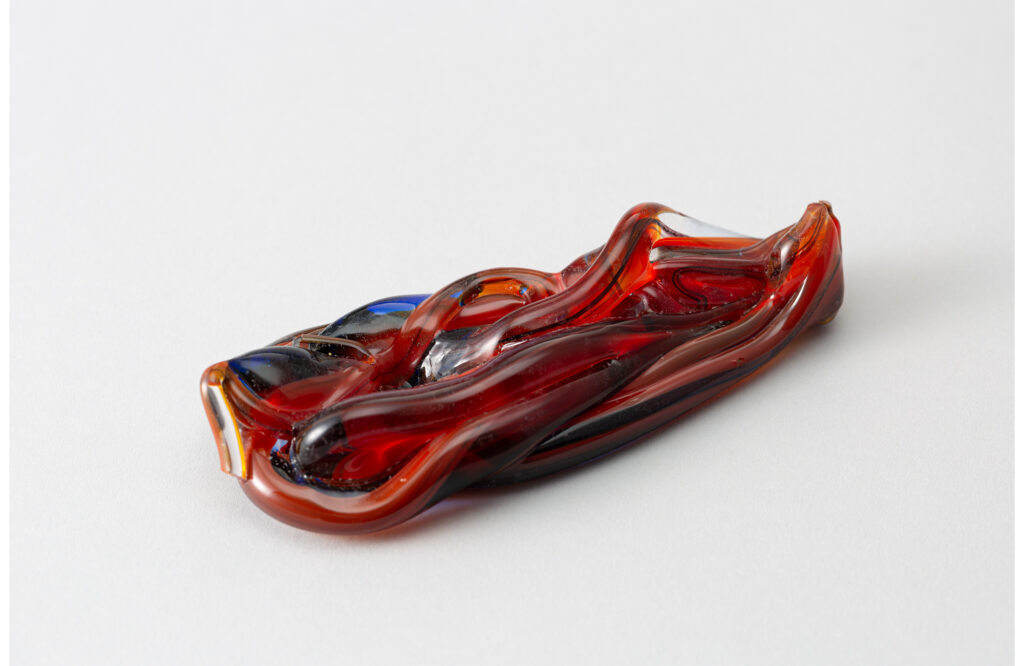 After his death, “Shuzo Takiguchi: Dream Drift Objects” (Setagaya Art Museum, 2005) was held, with about 700 works by 130 artists, including some of his own. Although there were several glass works by Nakagawa, they did not stand out in particular. Meanwhile, the “Hommage Shuzo Takiguchi” (1981-2007) exhibition, organized by the Satani Gallery, continued for the 28th time. The organizers, Satani Gallery and Shiseido, appointed Nakagawa for this commemorative 20th exhibition of homages to acquaintances of Takiguchi, including his poetry collection “The Gaze of Matter,” Experimental Studio, Joan Miró, A. Breton, and Tetsuro Komai, and prepared The Ginza Art Space at Shiseido as the venue. Among Takiguchi’s many acquaintances, Nakagawa seemed to have a special significance.